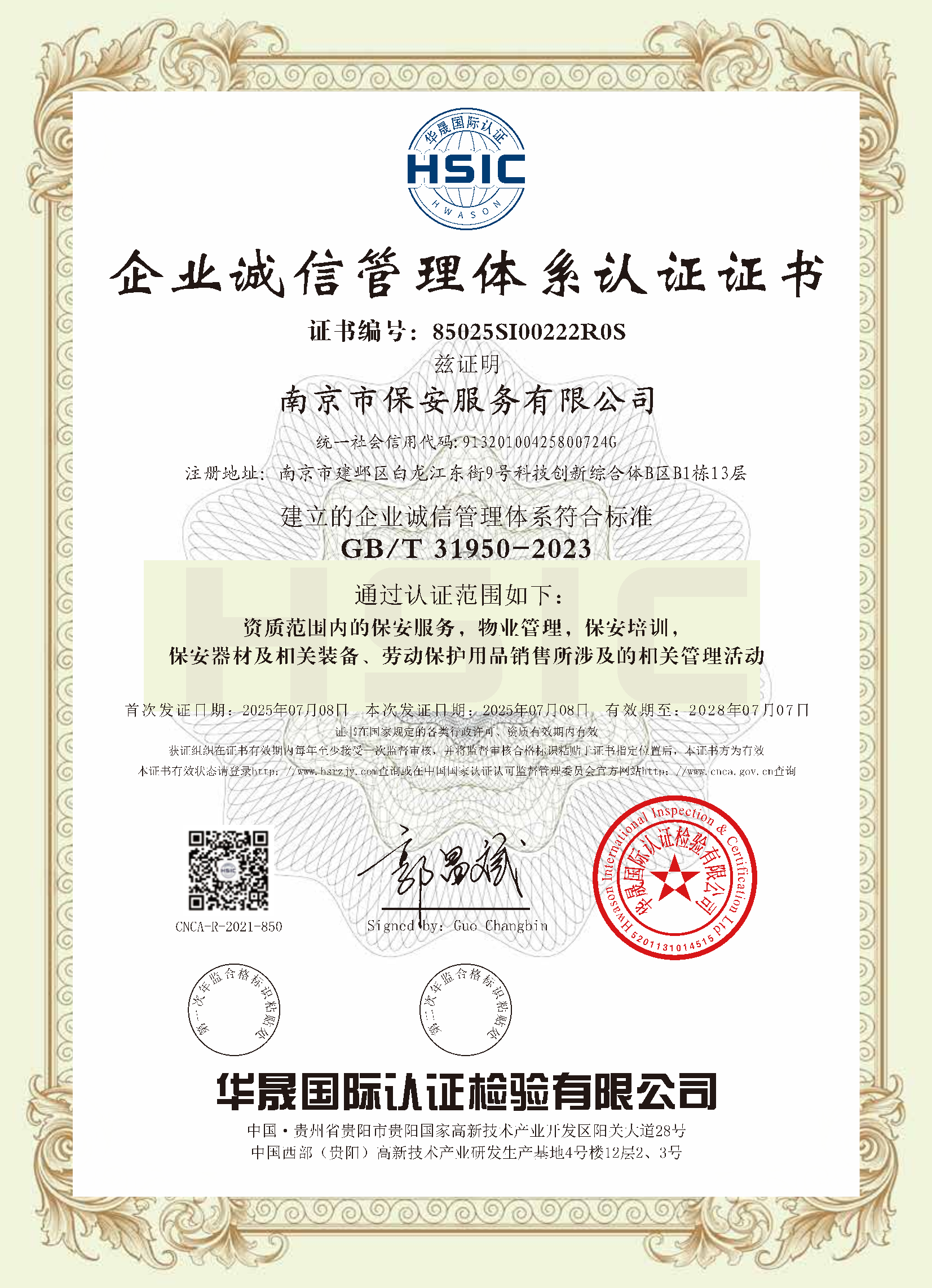 祝賀:南京市保安服務(wù)總公司通過企業(yè)誠信管理體系認(rèn)證和企業(yè)社會責(zé)任管理體系認(rèn)證[07-16]